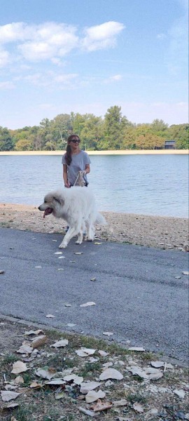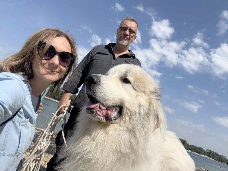 naše 14 letá dcera,krmí ji, kartáčuje ji kožíšek a chodí s ní každý den na procházky. Teď v létě se chodí koupat do přehrady.